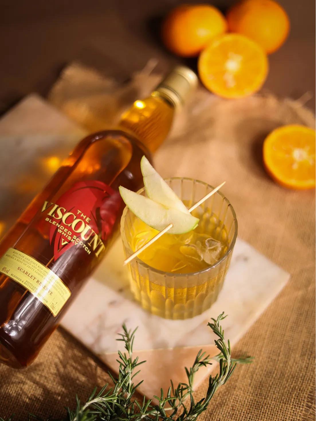 Ingredients: Viscount whiskey, apple liqueur, sweet vermouth, cinnamon dash